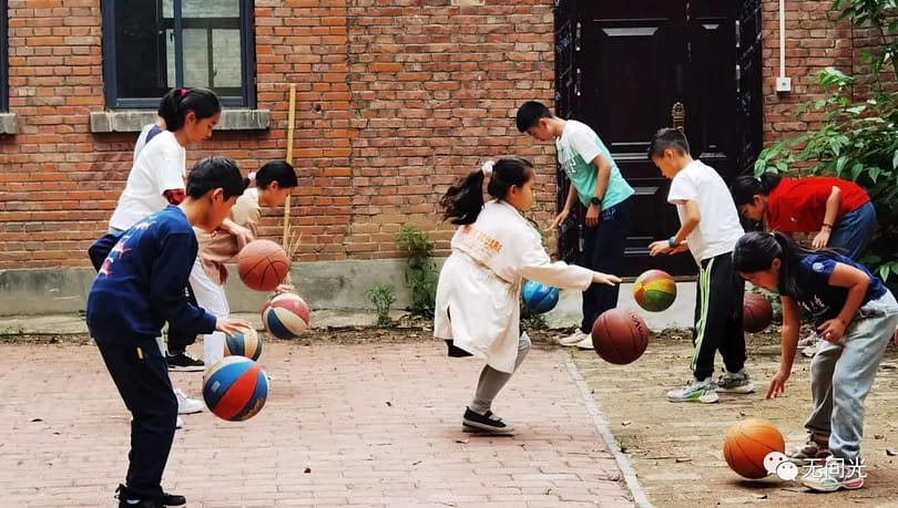 由于无间光是融合教育,大孩子和小孩子混合在一起上课,年龄跨度比较大。一些大孩子可以参与的运动项目,小孩子无法参加。所以一般按孩子们现阶段的能力(不是按年龄)分作大孩子组和小孩子组进行不同的项目。但在某个阶段需要锻炼孩子们的协作和信任能力时,也会设计一个需要互相配合的项目,把所有孩子混合在一起进行。