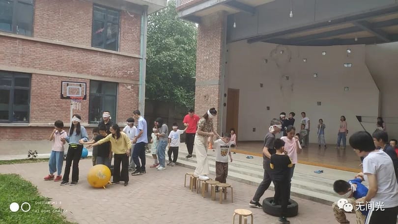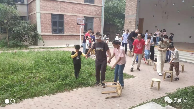 在刚刚结束的一周里,茶话会主题是信任和凝聚。我们设置了蒙眼引领跨越障碍的活动:一个伙伴用布条蒙眼,另一个伙伴在旁边用言语、动作引领蒙眼者跨越障碍回到起点。活动参与规则:不同家庭组合为一个团队,要求整体全员参与;蒙眼者闭上眼睛不能打开布条看路线,要相信自己的伙伴,信任团队;每个团队里蒙眼者和引领者组合时,必须出现孩子和家长都作为一个引领者的组合;引领者需用温和耐心恰当的方式引领蒙眼者,尊重蒙眼者的速度,想办法协作蒙眼者跨越所有障碍物;其他等待组的伙伴不能提示。