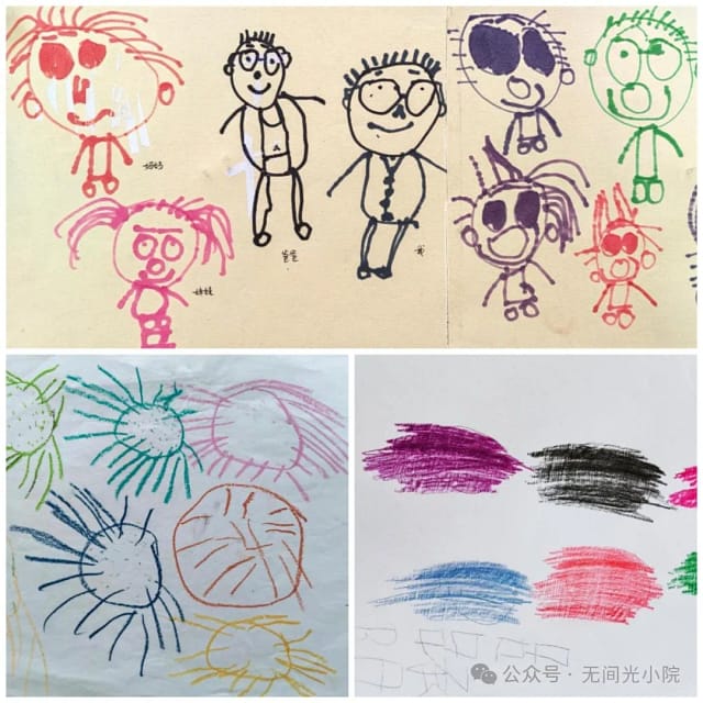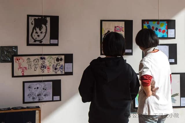 今年的3月30日,无间光永续社区在小院举办了一次世界孤独症日主题画展。通过这次画展,我们把同一个孩子不同时期的作品放在一起,能够很明显地看到变化。例如有个12岁的男孩,以前画画只会画圈圈和乱涂鸦,现在能够把人物的五官、头发等细节都画出来。