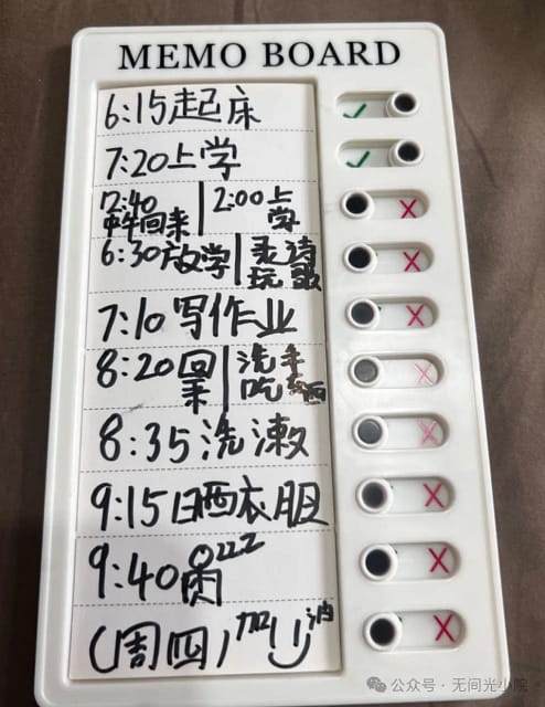 开始的几天,我有意识地提醒她去看时间,她做的还不错。