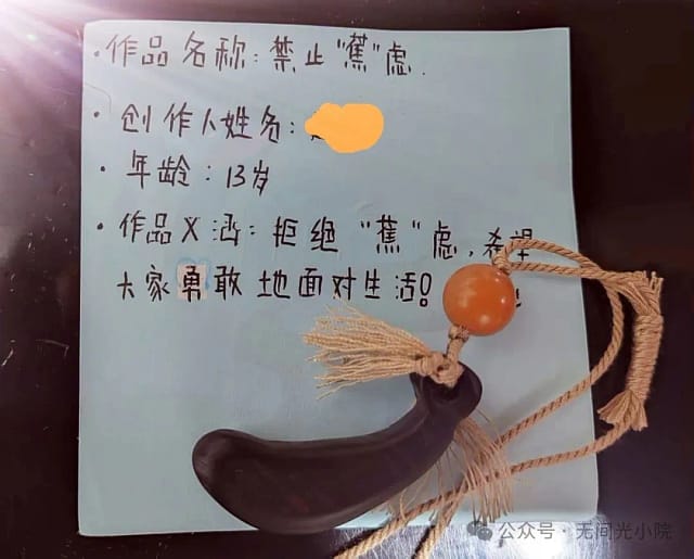 YX六一义卖作品设计的是一个挂饰:寓意是拒绝“蕉”虑,希望大家勇敢地面对生活!